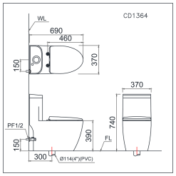 - Tâm thoát phân: 300mm