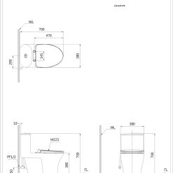 - Tâm thoát phân: 300mm